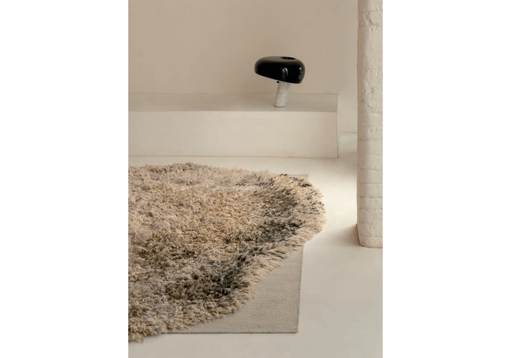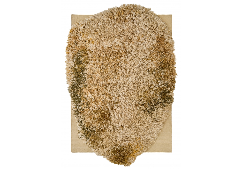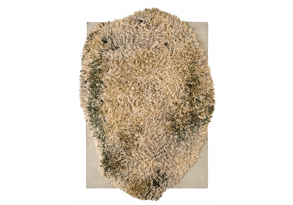 Alga produit et signé par Nanimarquina est un tapis Dhurrie noué et tissé main, composé de 50 % laine afghane, 20 % laine de Nouvelle-Zélande, 21 % laine vierge et 9 % jute (version ocre), 50 % laine afghane, 29 % laine de Nouvelle-Zélande et 21 % laine vierge (version grise) et 55 % laine afghane et 45 % laine de Nouvelle-Zélande (version écrue).