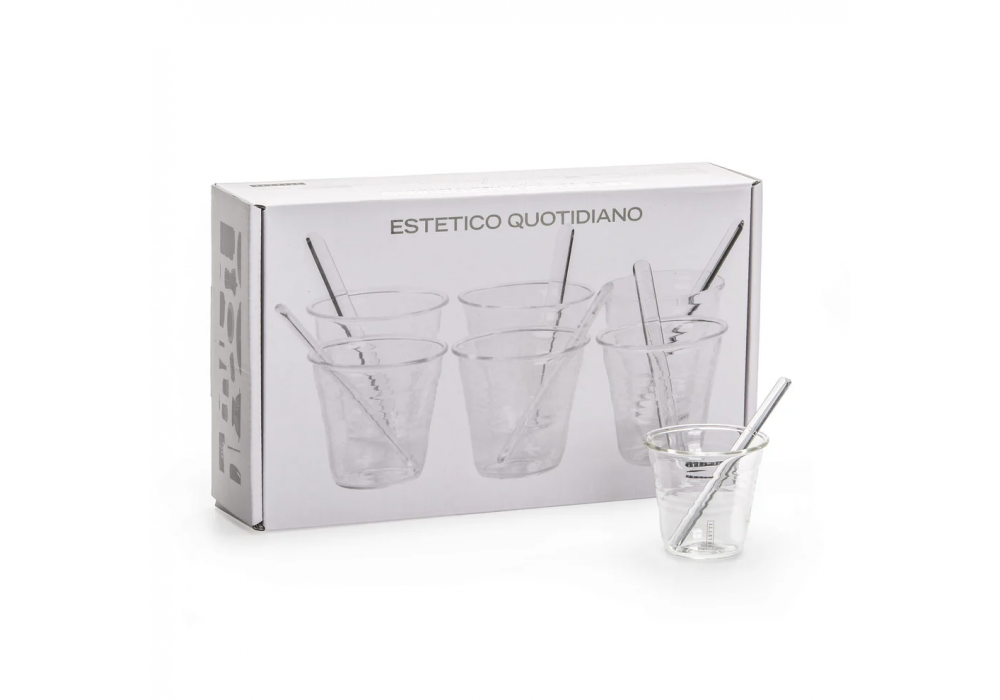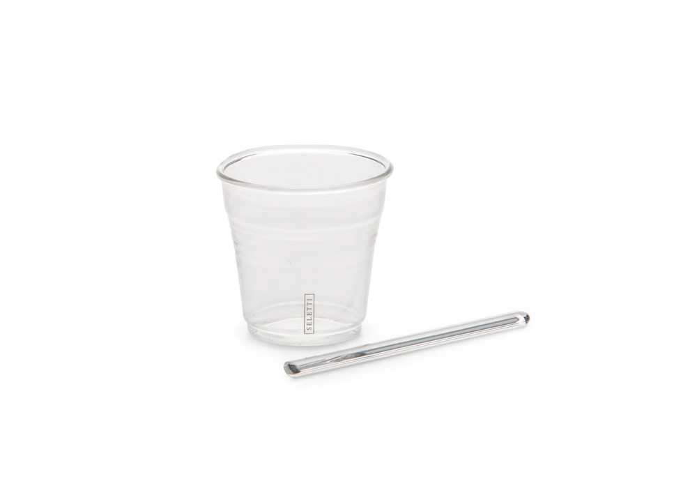 Bicchierino Da Caffè conçu par Selab + Alessandro Zambelli pour Seletti est un ensemble en verre composé de 6 tasses + agitateurs.