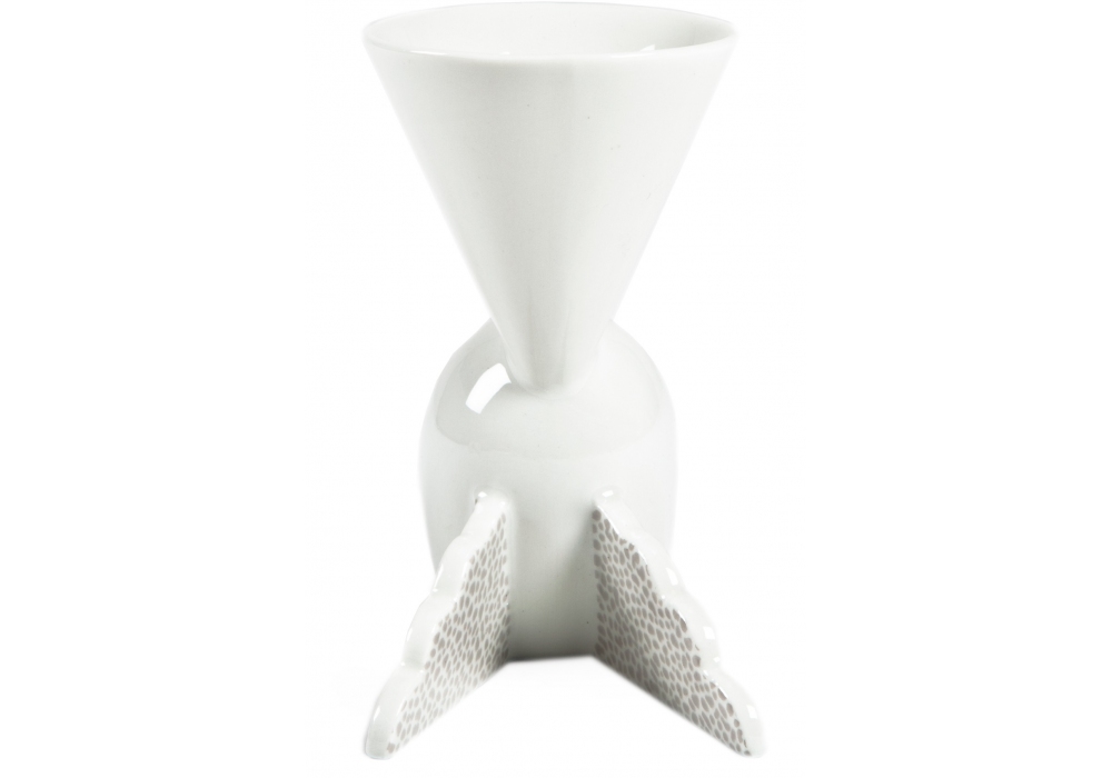 Onega conçue par Matteo Thun pour Memphis Milano est une coupe en porcelaine blanche avec des décorations.