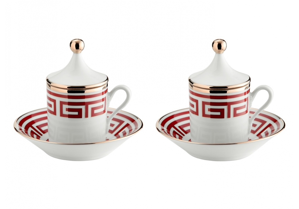 Tazza Caffè con Piatto e Coperchio Labirinto Scarlatto conçue par Ginori 1735 est un jeu de 2 tasses de café décorées. Avec soucoupe et couvercle.