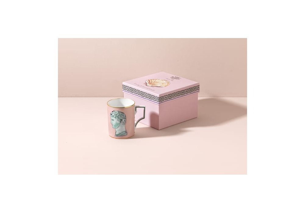 Tazza Il Viaggio di Nettuno Pink conçue par Luke Edward Hall pour Ginori 1735 est une tasse décorée.