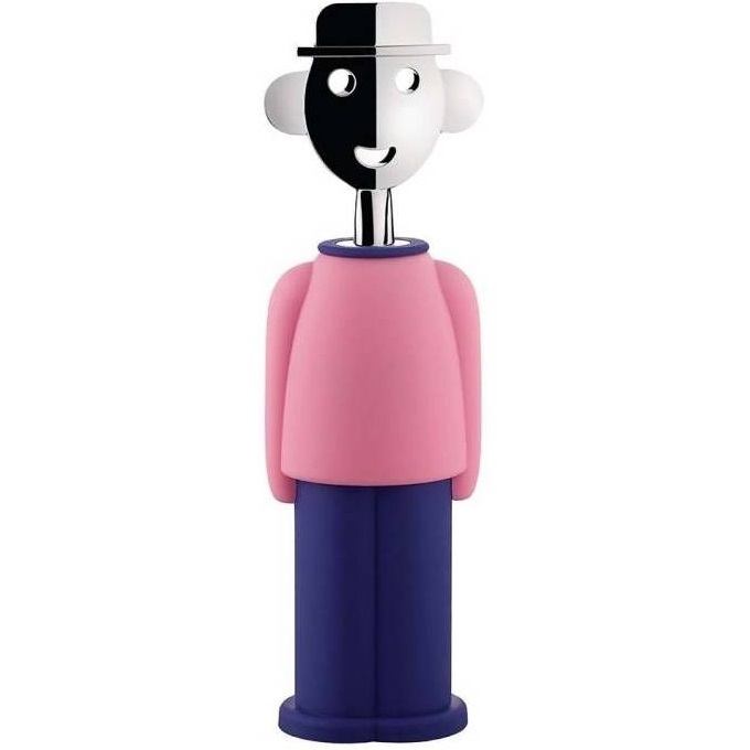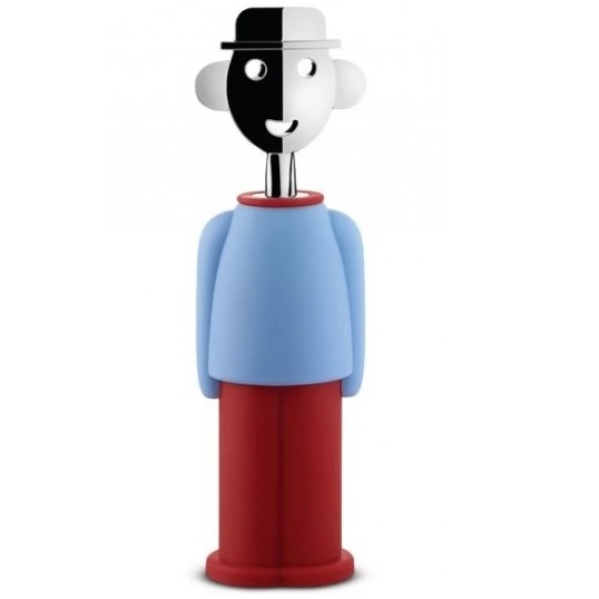 AM23 Alessandro M. conçu par Alessandro Mendini pour Alessi est un tire-bouchon en résine thermoplastique et zamac chromée decoré à la main. Disponible aussi en 3 couleurs.