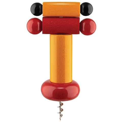 ES17 conçu par Alessandro Mendini pour Alessi est un tire-bouchon en bois de hêtre. Disponible en 3 combinaisons de couleurs.