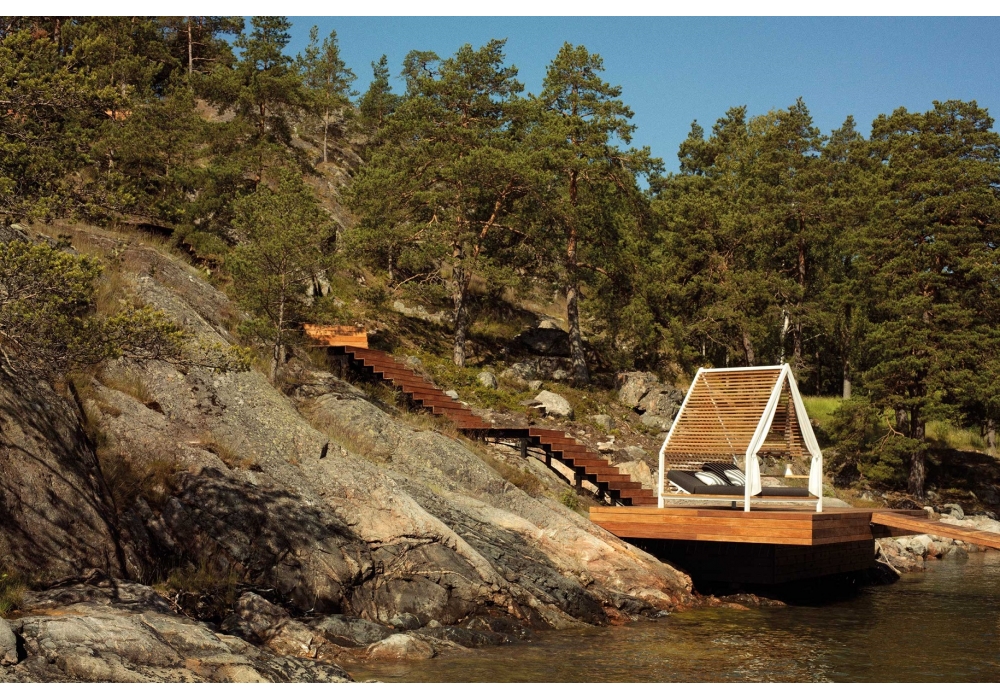 Cottage, conçu par Patricia Urquiola pour Kettal, est un lit de repos/gazebo d'extérieur avec une structure entièrement en aluminium. Le toit est à double pente en aluminium et porotex avec un rideau en tissu. Le lit a un dossier inclinable rembourré et recouvert de tissu. Cottage est disponible dans différentes finitions de structure et de tissu.