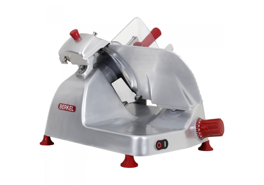 Pro Line XS25 conçue par Berkel est une trancheuse en acier. Disponible en finition silver ou rouge.