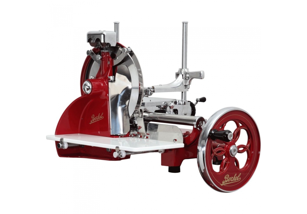 Volano P15 conçue par Berkel est une trancheuse en acier. Disponible également en 2 finitions: rouge ou noir. Sur demande, le piédestal est disponible comme accessoire.
