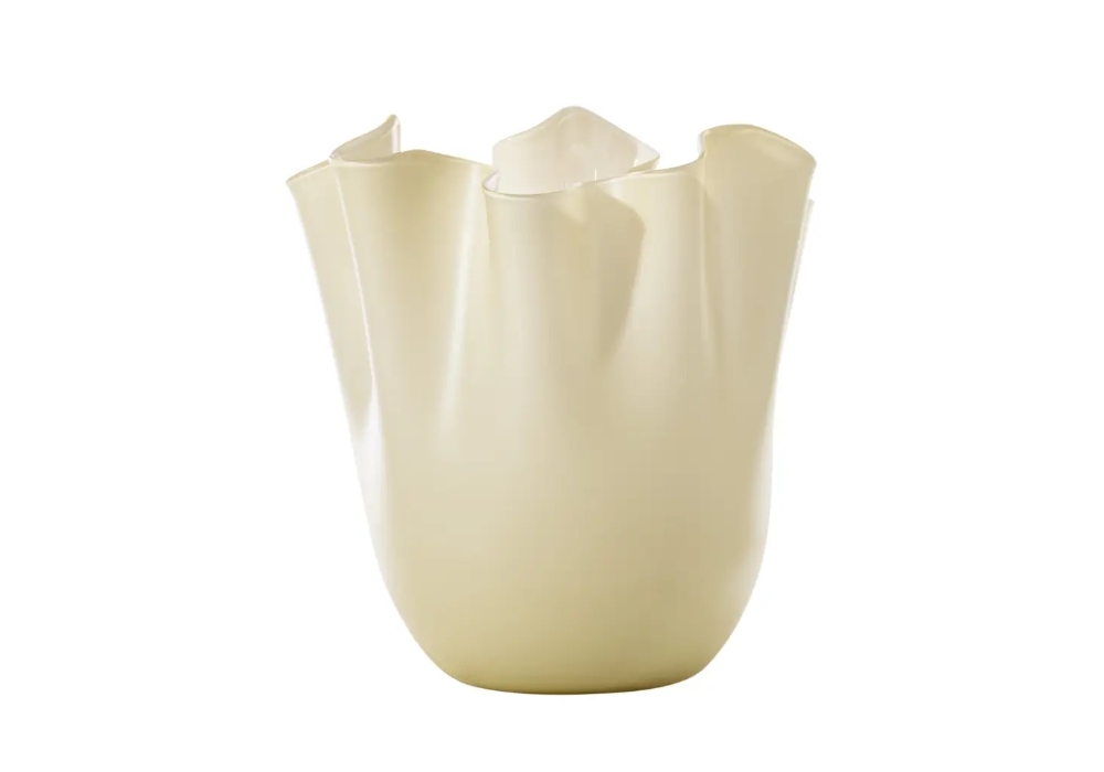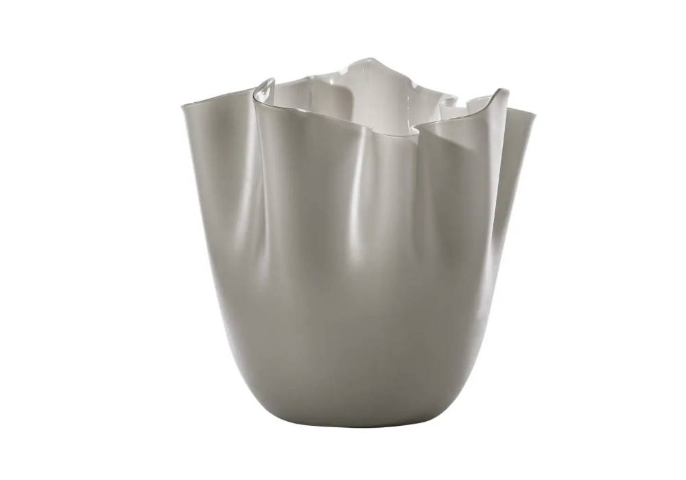Fazzoletto 700.04 conçu par Fulvio Bianconi et Paolo Venini pour Venini est un vase en verre opale soufflé et fini à la main. Disponible en différentes finitions.