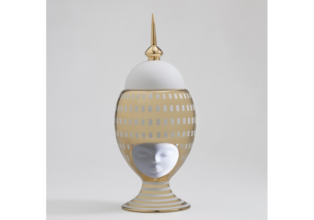 Sisters Thai Helen conçu par Pepa Reverter pour Bosa est un vase en céramique blanche et or mat fini à la main avec un design élégant, qui fait partie de la collection Sisters Thai composée de 4 autres vases. L'intention du concepteur est de rendre hommage à la femme de toutes les cultures et tous les temps.