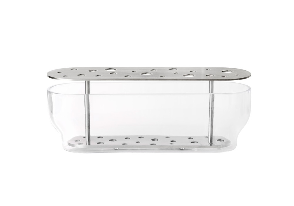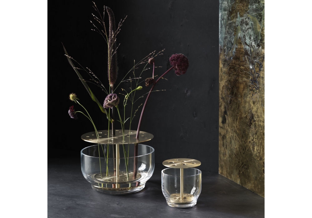 Ikebana conçu par Jaime Hayon pour Fritz Hansen est un vase en verre soufflé à la bouche et en acier inoxydable. Disponible en trois dimensions.