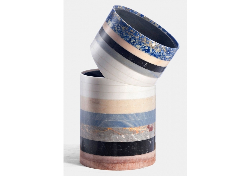 Y-Tube conçu par Patricia Urquiola pour Budri est un vase polychrome réalisé en marbre. Disponible aussi en 4 modèles.