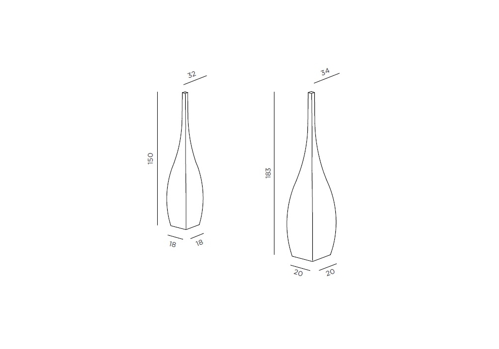 | Dimensions | • 32 x 32 x H 150 cm; • 34 x 34 x H 183 cm |