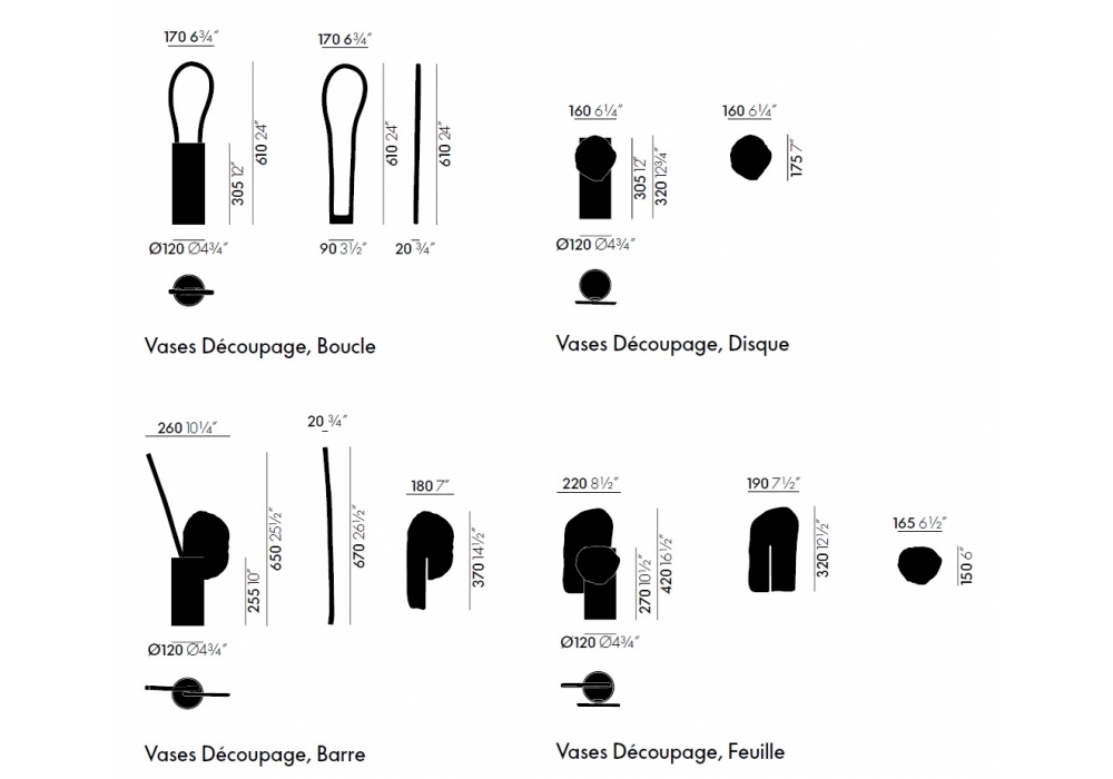 Vases Découpage conçu par Ronan & Erwan Bouroullec pour Vitra est une collection de vases en céramique, colorés manuellement par trempage et vitrés. Disponible en 4 modèles.