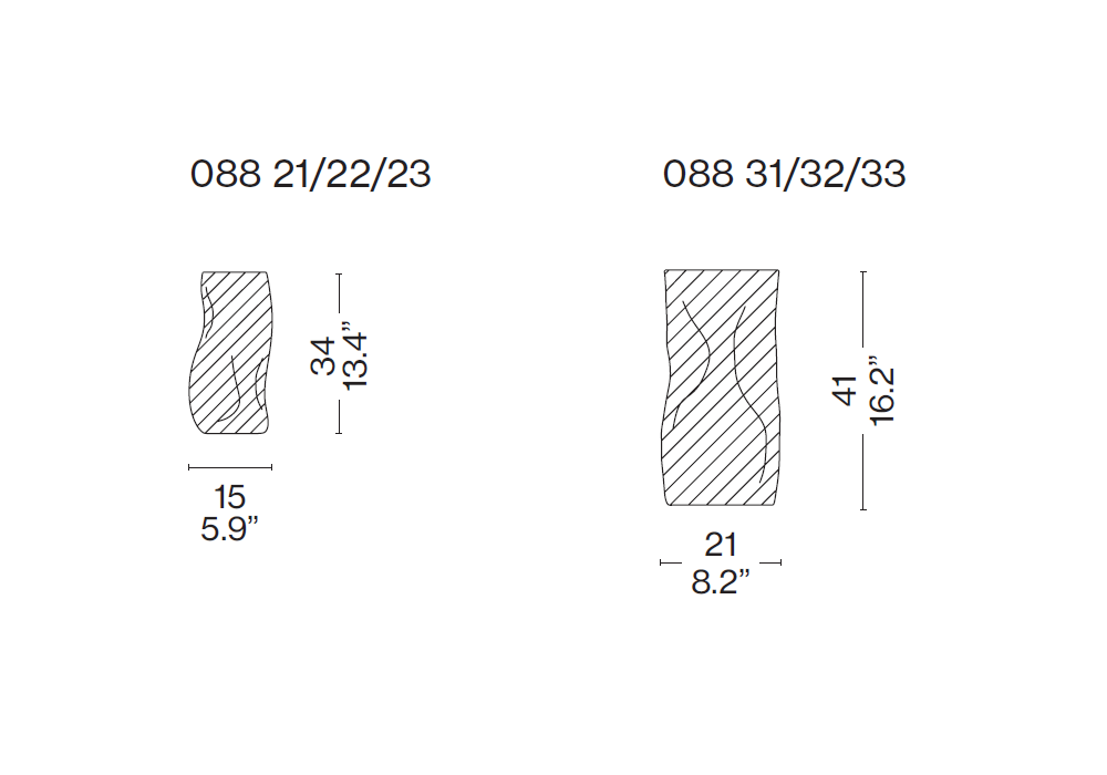 | Dimensions | Ø 15 x H 34 cm; Ø 21 x H 41 cm. |