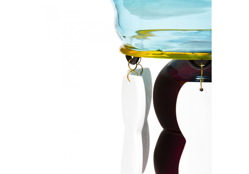Fililla conçu par Ettore Sottsass pour Memphis Milano est un vase en verre soufflé avec pendentifs.