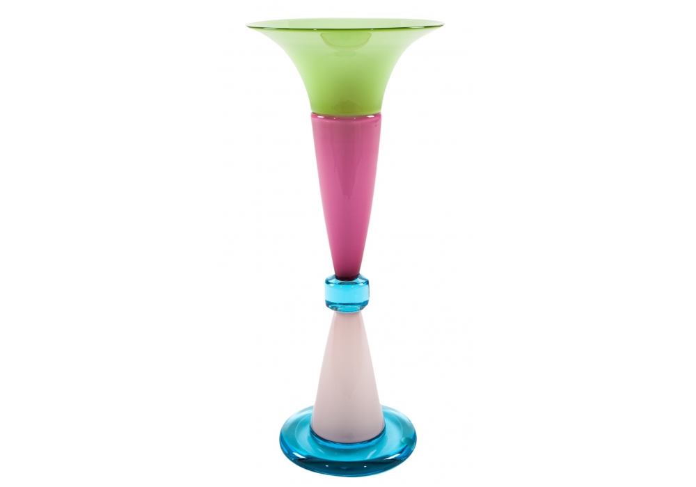Pasifila conçu par Ettore Sottsass pour Memphis Milano est un vase en verre soufflé.