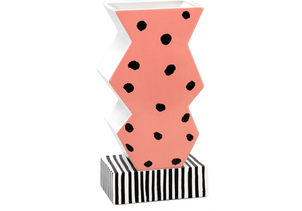 Zig Zag conçu par Roger Selden pour Memphis Milano est un vase en céramique avec une décoration à deux faces.