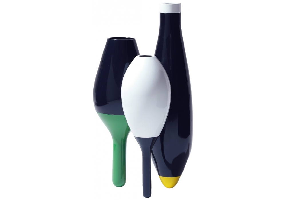 3 Vases conçu par François Azambourg pour Cappellini est un vase en céramique brillante constitué de l'union de trois vases de formes différentes proposés dans des combinaisons de couleurs fixes. Livré avec des porte-fleurs en céramique brillante internes amovibles.