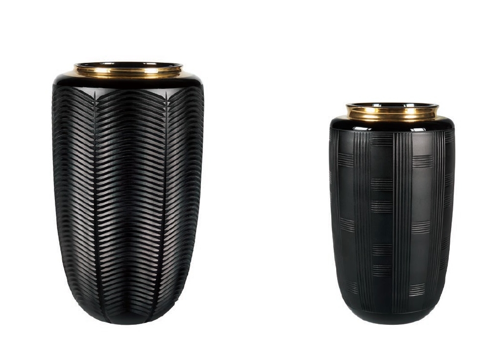 Jet Black conçu par Vista Alegre est un vase en verre noir avec une texture satinée mate et un col doré peint à la main.