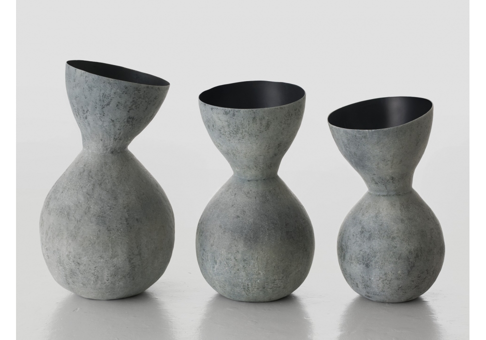 Incline conçu par ImperfettoLab est un vase en fibre de verre, disponible en différentes finitions et tailles.