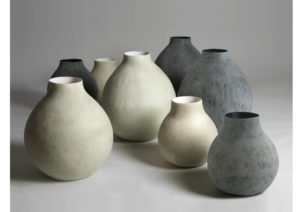 Bulbo conçu par ImperfettoLab est un vase en fibre de verre, disponible en différentes finitions et tailles.