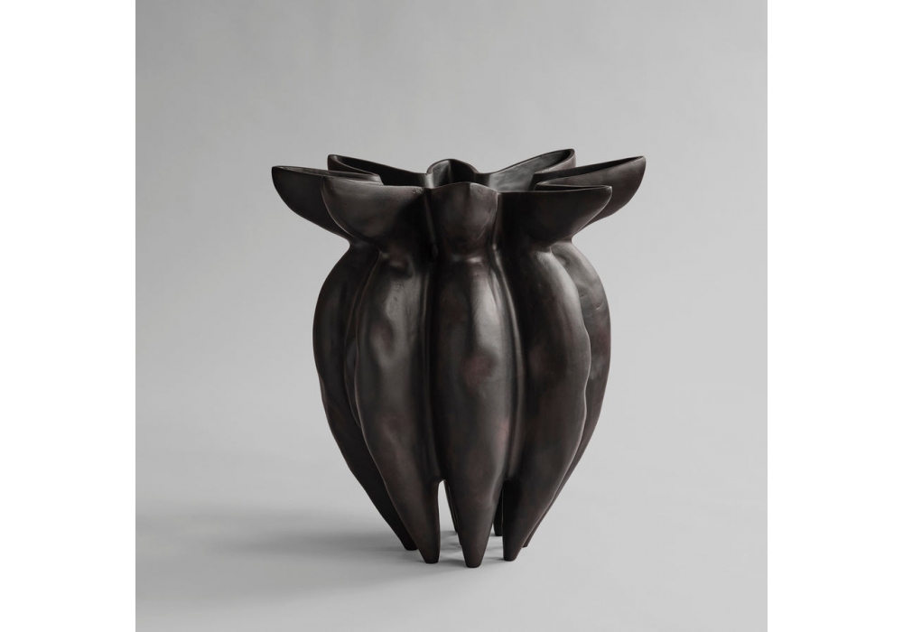 Lotus conçu par Kristian Sofus Hansen & Tommy Hyldahl pour 101 Copenhagen est un vase en céramique de couleur café. Disponible en différentes tailles.