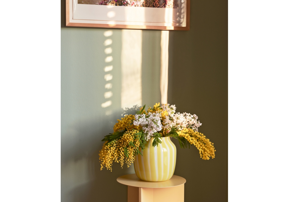 Juice conçu par Kristine Five Melvær pour Hay est un vase réalisé en verre coloré avec la technique traditionnelle du filigrane. Disponible en différents modèles.