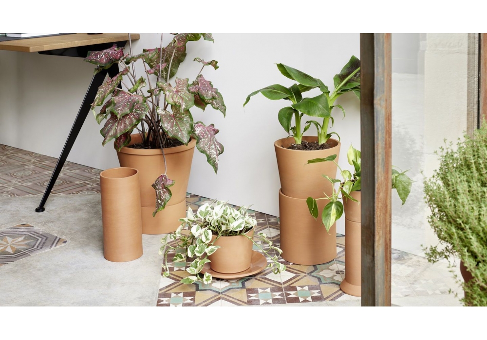 Terracotta Pots conçue par Thélonious Goupil pour Vitra est une collection de vases en terre cuite dense. Les formes en forme de colonne des vases de différentes tailles agissent comme des socles pour les plantes qu'ils contiennent, les élevant et soulignant leur présence dans la pièce. Disponible en quatre dimensions.