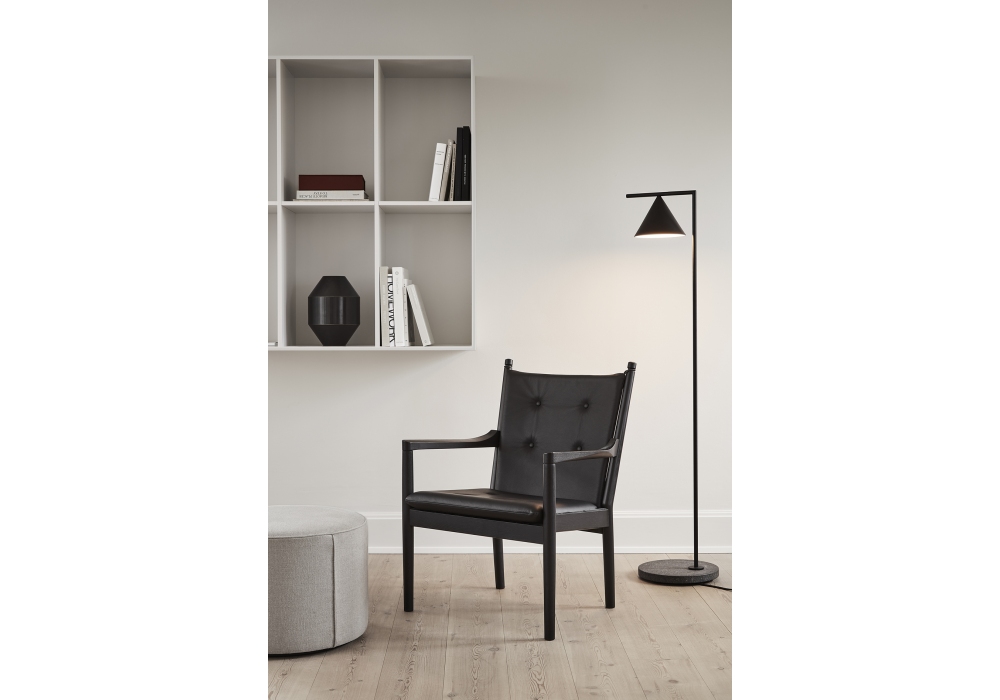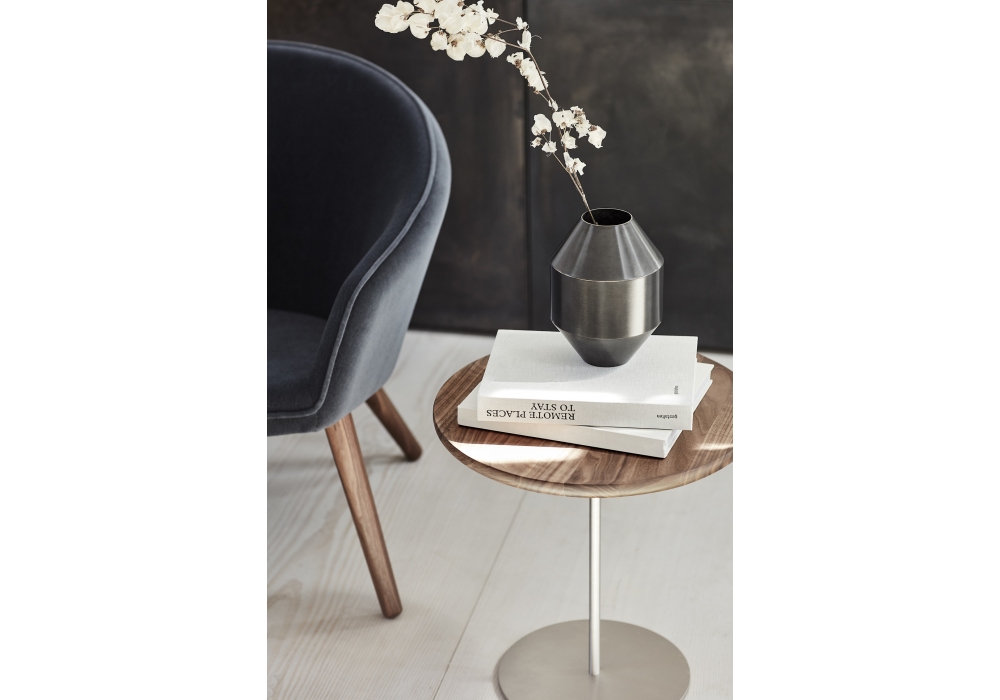 Hydro conçu par Sofie Østerby pour Fredericia est un vase en laiton coulé avec traitement de surface oxydé noir, ou en verre cristallin sans plomb soufflé à la bouche avec bord coupé en ciseaux. Disponible en deux tailles.