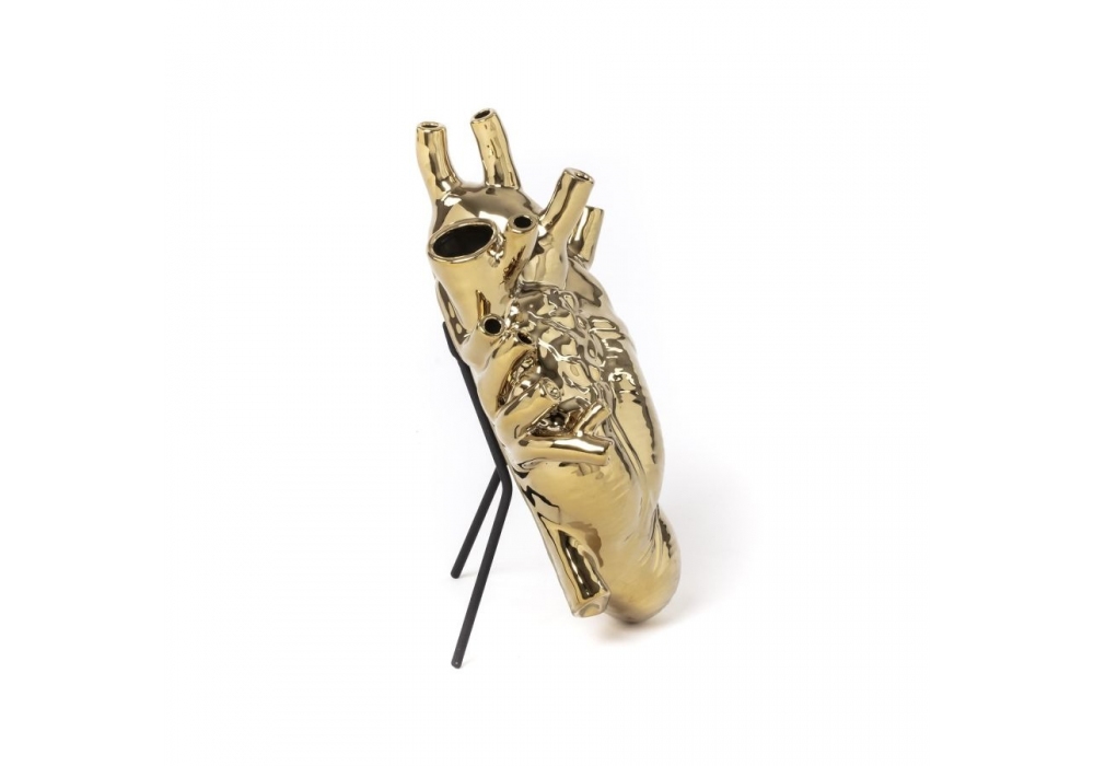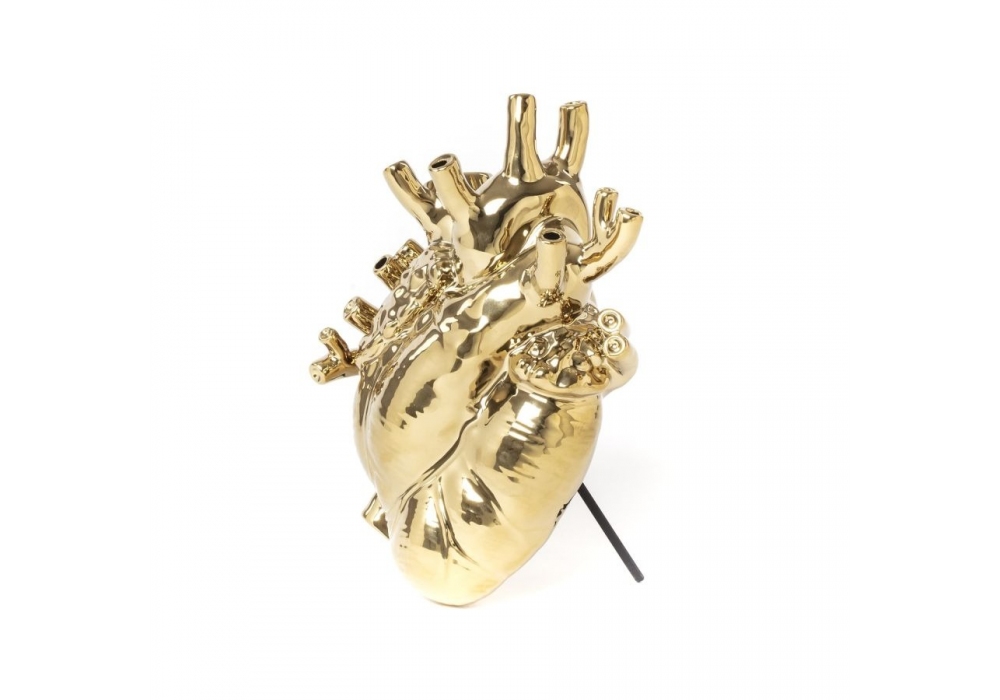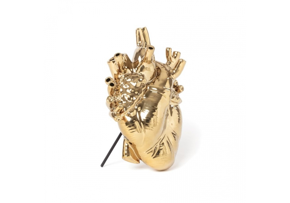Love in Bloom Gold conçu par Marcantonio pour Seletti est un vase en porcelaine très fine de couleur or qui représente l'anatomie d'un cœur humain.