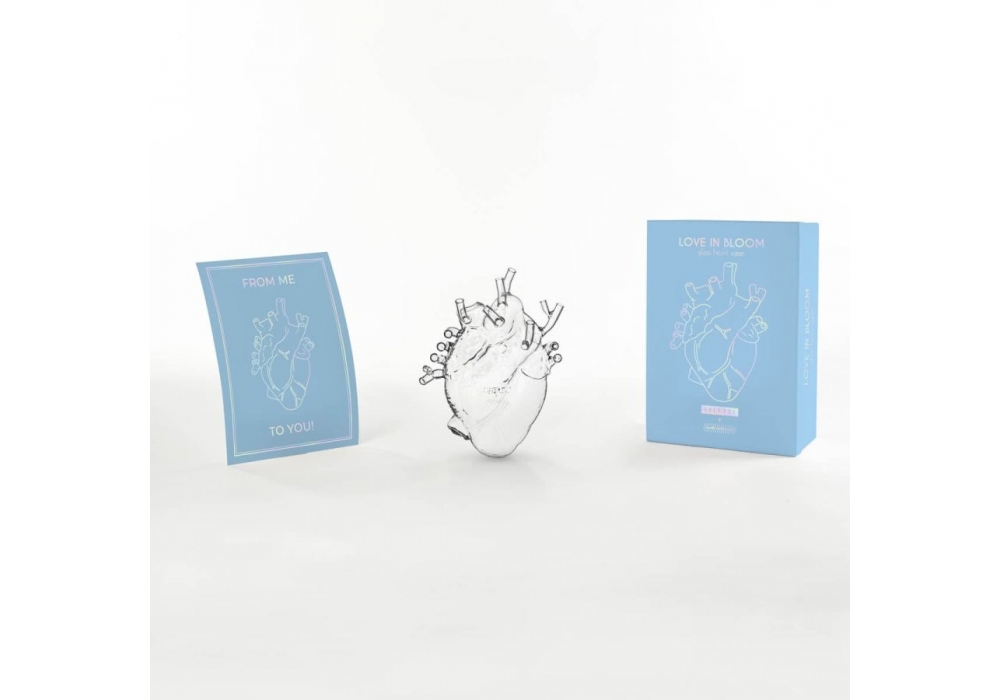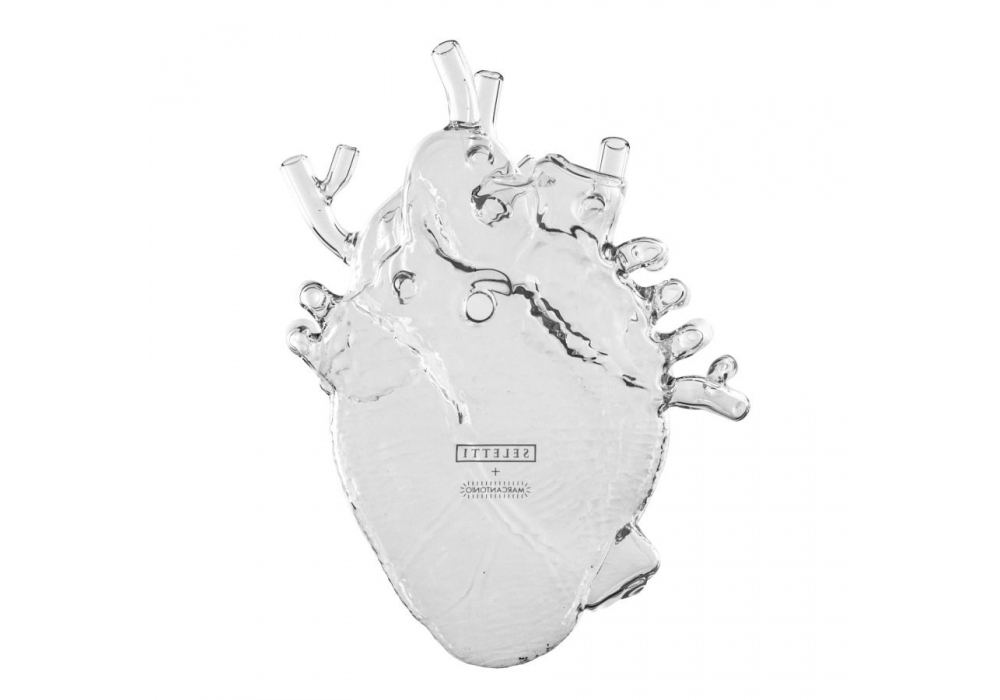 Love in Bloom Transparent conçu par Marcantonio pour Seletti est un vase en verre transparent qui représente l'anatomie d'un cœur humain.