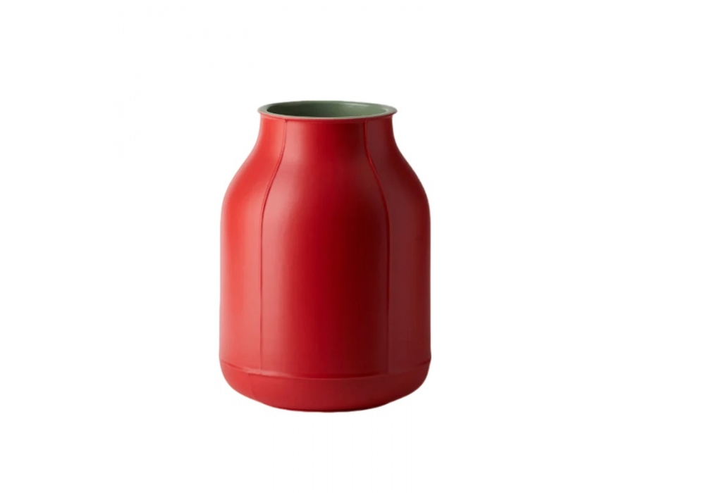 HUB-1 conçu par Benjamin Hubert pour Bitossi Ceramiche est un grand vase tonneau coulé en argile blanche. Peint en glaçure verte sauge mate à l'intérieur et en rouge à l'extérieur.