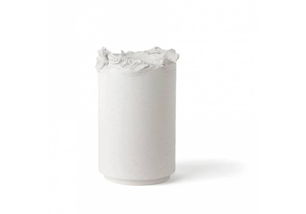 Clay Vase conçue par Formafantasma pour Bitossi Ceramiche est une collection réalisée au tour, gravée verticalement pour créer des sections qui seront ensuite déchirées à la main créant ainsi le caractère unique de cet élément. Disponible en différentes finitions et dimensions.