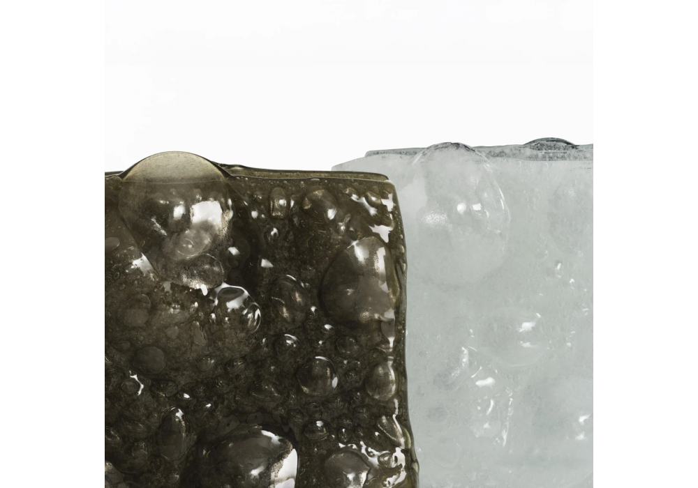 Opalia conçu par Patricia Urquiola pour Glas Italia est un vase réalisé en faisant fondre des chutes de cristal avec des additifs spéciaux qui créent des masses de verre irrégulières donnant une surface ondulée pleine de bulles. Disponible en différentes finitions.