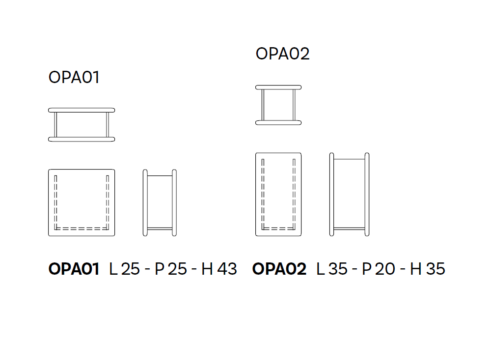 | Dimensions | 25 x 25 x H 43 cm; 35 x 20 x H 35 cm. |