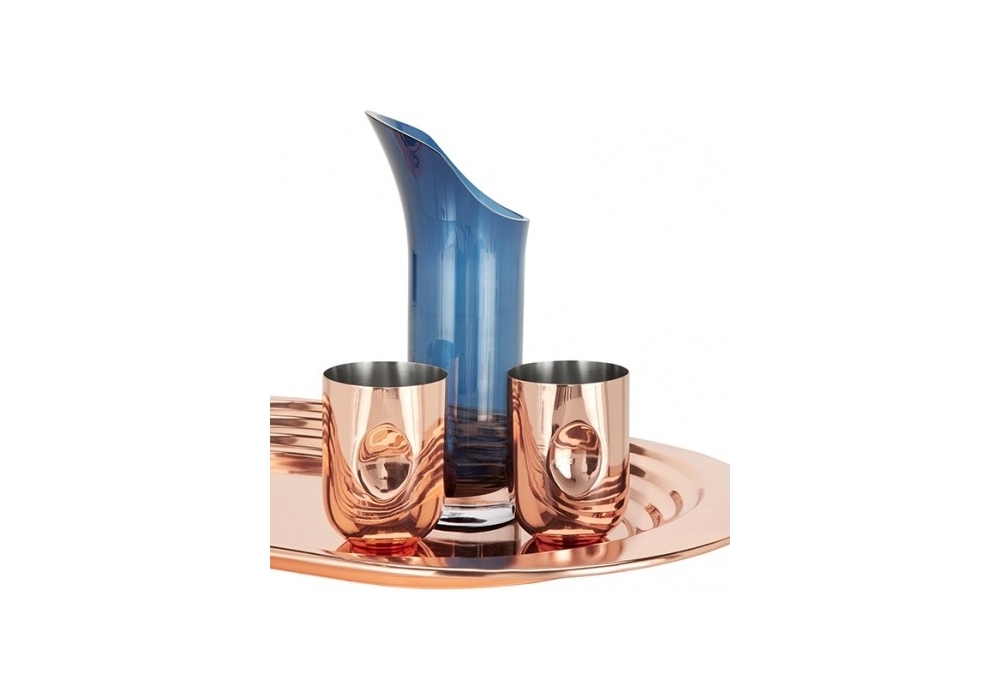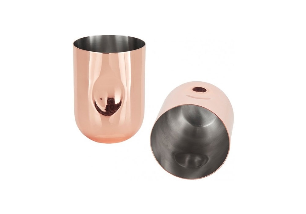 Plum Moscow Mule conçu par Tom Dixon est un ensemble composé de deux verres en acier massif finition cuivre brillant.