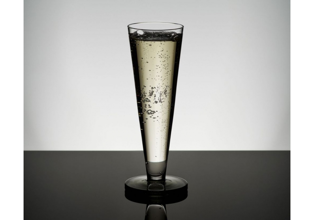 Puck conçu par Tom Dixon est un ensemble composé de deux verres à flûte en verre soufflé avec une nuance de couleur fumée claire.