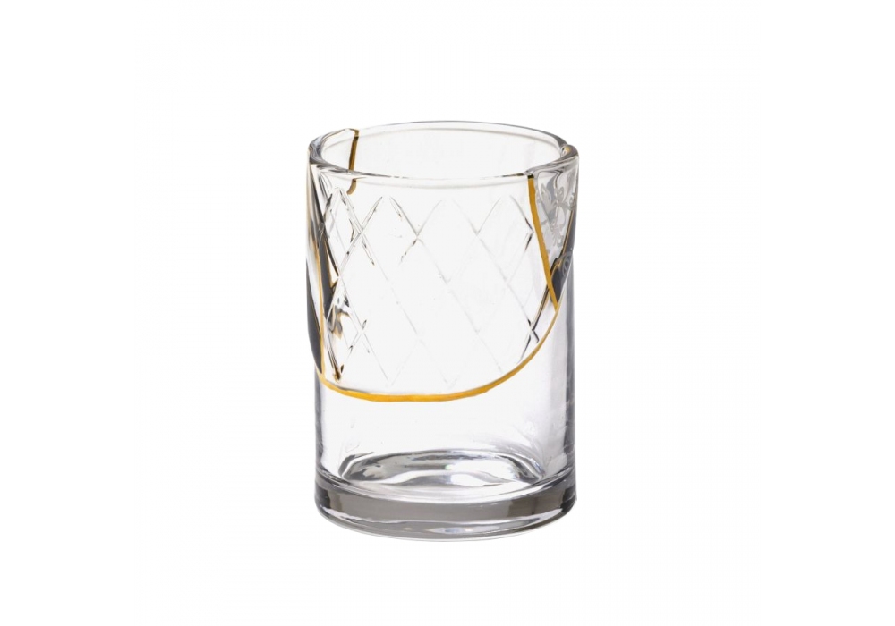 Kintsugi N°2 conçu par Marcantonio est un set de 2 verres en verre transparent avec des détails dorés.