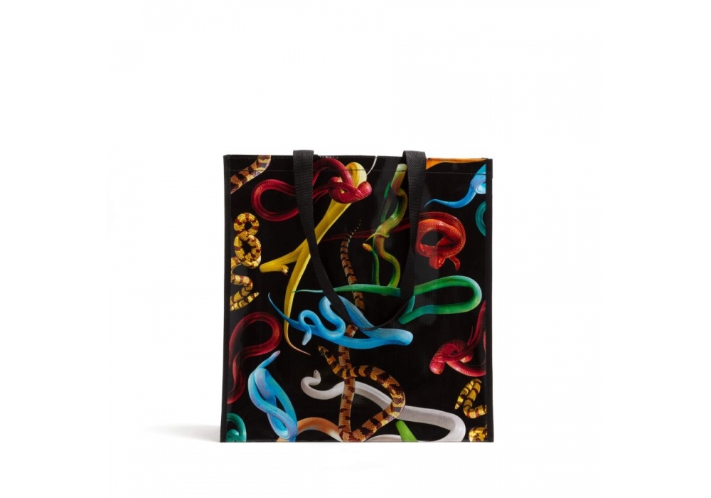Snakes firmata da Toiletpaper Magazine per Seletti è una borsa per la spesa in polipropilene con stampe colorate. Snakes è disponibile in differneti dimensioni.