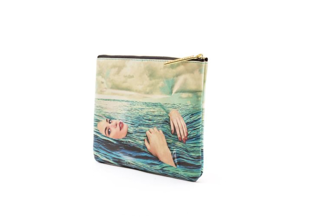 Seagirl firmata da Toiletpaper Magazine per Seletti è una busta per cosmesi munita di zip in polipropilene con stampa colorata.