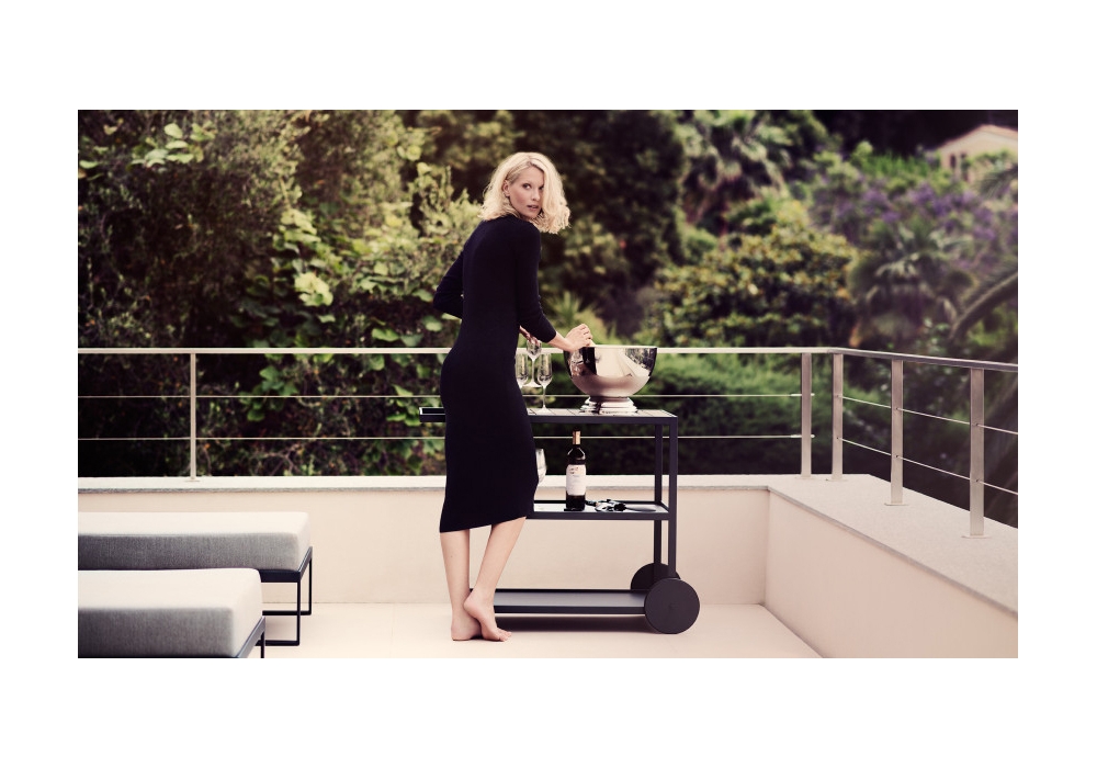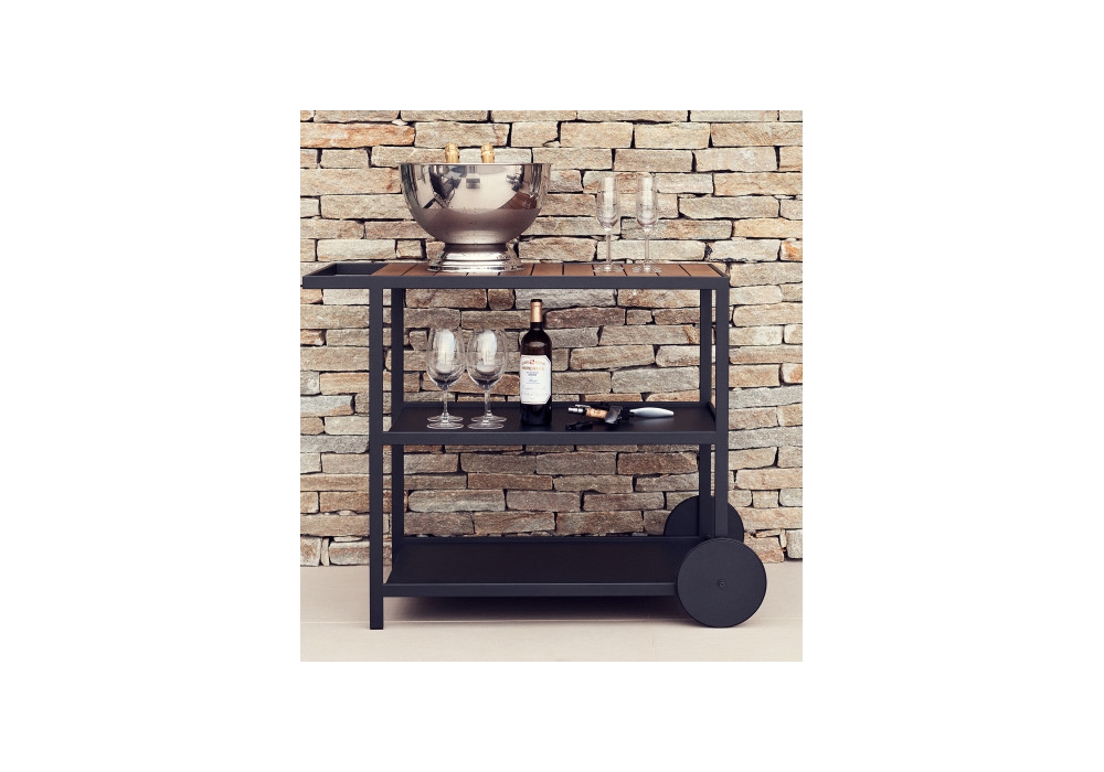 Garden firmato da Broberg & Ridderstråle per Röshults è un carrello con struttura in acciaio inossidabile e piano in teak.