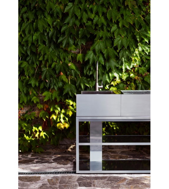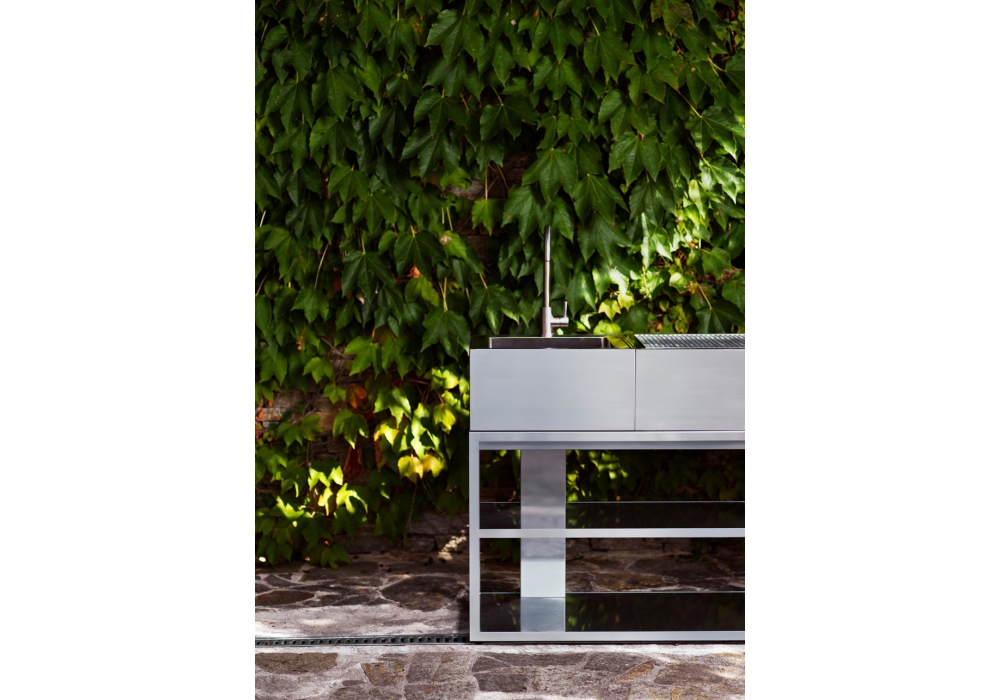 Module Kitchen Sink firmato da Broberg & Ridderstråle per Röshults è un lavello da cucina per esterni in acciao inossidabile. Disponibile in due finiture.