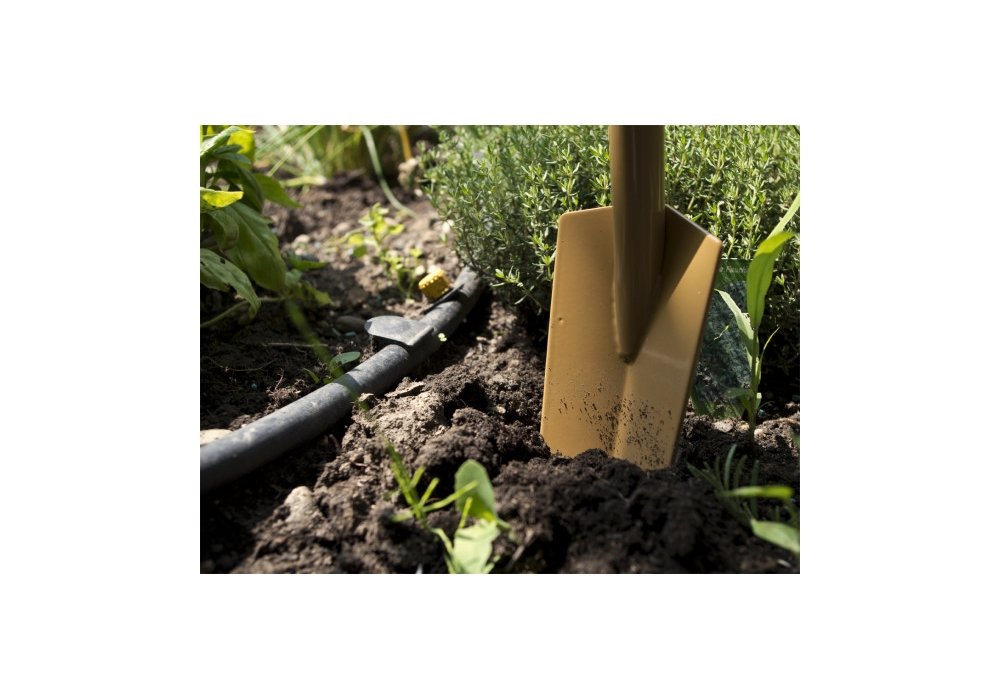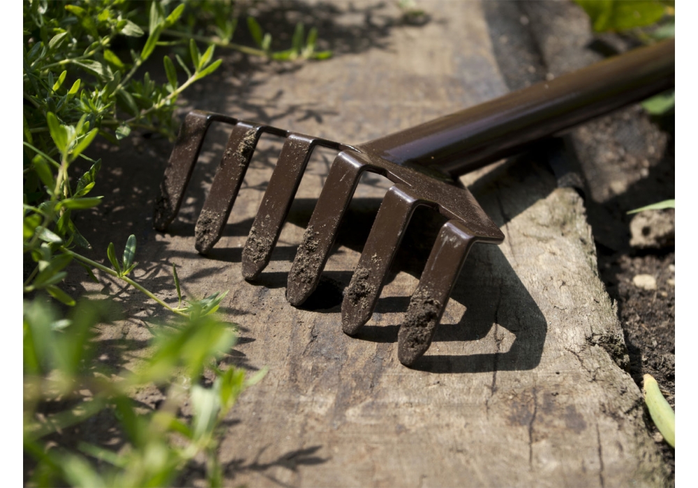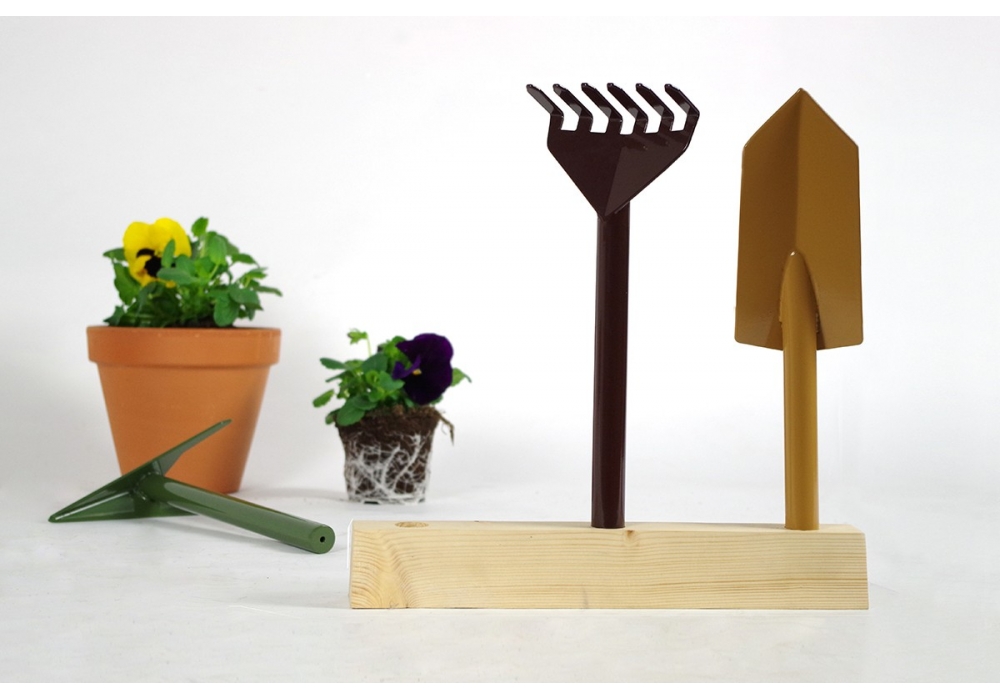 Orte firmato da Giulio Iacchetti per InternoItaliano è un set da giardino composto da zappetta, rastrello a 6 denti, paletta in metallo verniciato e base in legno su cui possono essere riposti a fine lavoro.