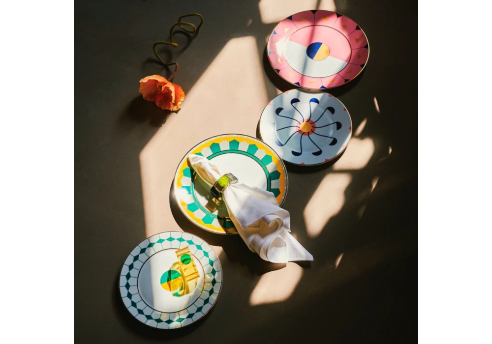 Medeira prodotto e firmato da Reflections Copenhagen è un piatto da cena in porcellana con varie ed estroverse decorazioni con ispirazione grafica all'Art Nouveau.