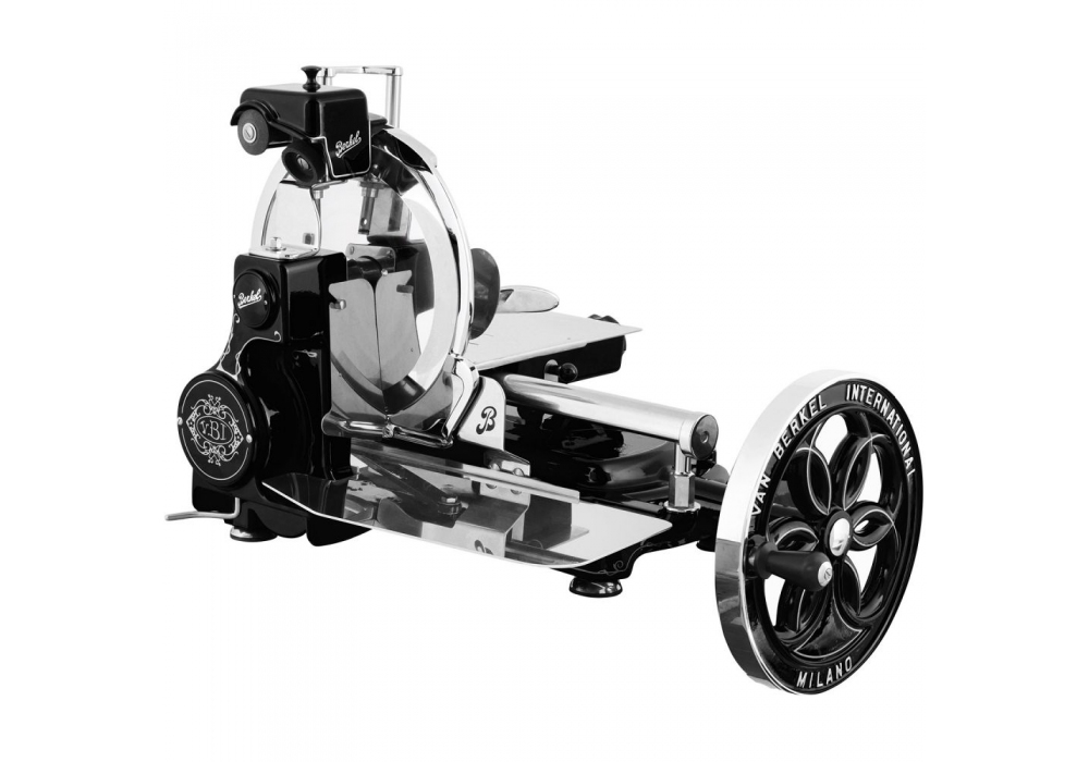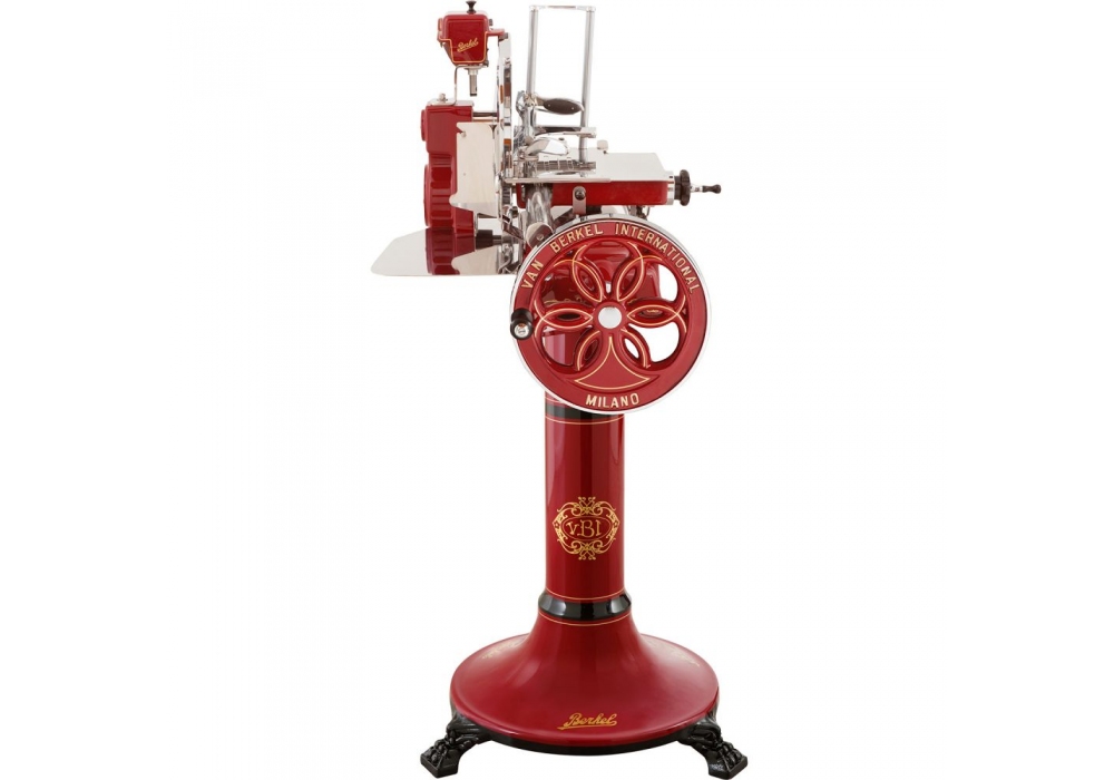 Volano B114 firmata da Berkel è un'affettatrice realizzata in acciaio. Disponibile anche in 2 finiture: rossa o nera. A richiesta, il piedistallo è disponibile come accessorio.