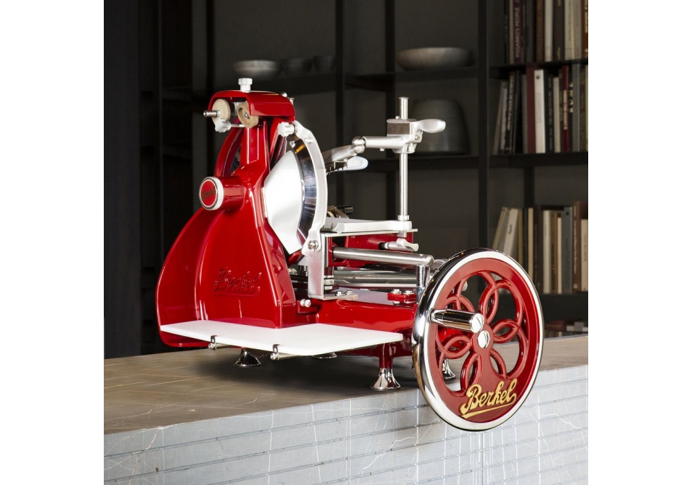 Volano B2 firmata da Berkel è un'affettatrice realizzata in acciaio. Disponibile anche in 2 finiture: rossa o nera. A richiesta, il piedistallo è disponibile come accessorio.