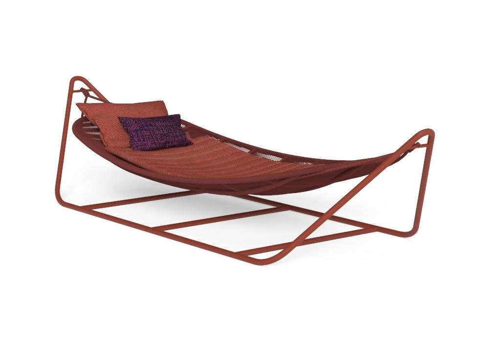 Panama disegnata da Ludovica e Roberto Palomba per Talenti è una amaca con struttura in alluminio e corda nautica sintetica disponibile in vari colori, cuscino in varie finiture.