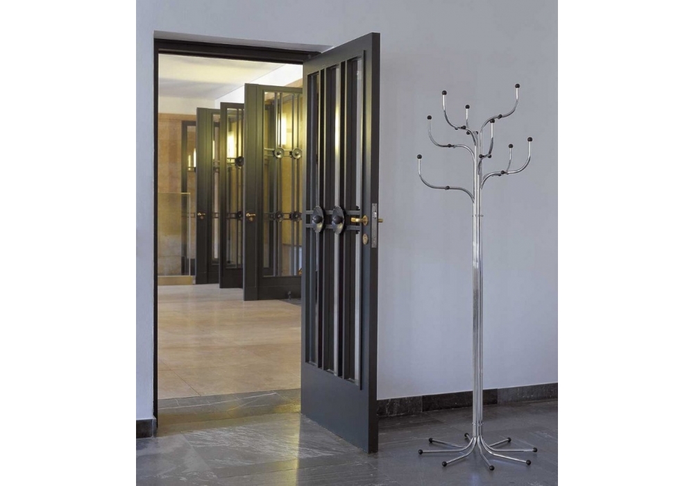 Coat Tree firmato da Sidse Werner per Fritz Hansen è un appendiabiti realizzato in acciaio cromato e manopole in plastica nera.