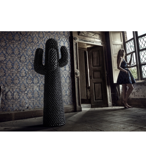 Nerocactus firmato da Guido Drocco e Franco Mello per Gufram è un appendiabiti in poliuretano espanso trattato con Guflac, vernice lavabile con acqua. Soggetto ad innumerevoli, libere e spesso equivoche interpretazioni Cactus è l’icona del design italiano che ha rivoluzionato il paesaggio domestico scardinando i confini tra ambiente interno e spazio aperto. Cactus si presenta come totem ironico.