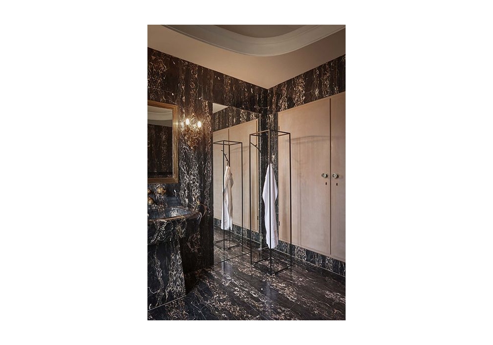Koeda firmato da Nendo per Cappellini è un appendiabiti in metallo dalla forma di parallelepipedo dallo spazio aperto in cui il rigore geometrico all’interno è interrotto da un ramo irregolare per appendere.