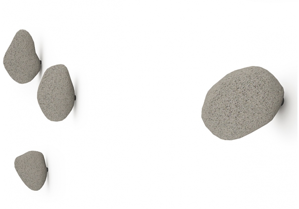 Meteore firmato da Roberto Mora per Minotti Italia è un appendiabiti da parete in sasso di "arenaria". Ogni singolo sasso è un pezzo unico e irripetibile per colore, forma e dimensione. Set da 5 sassi.